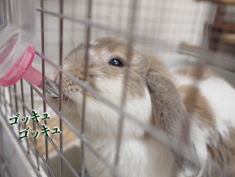ニコちゃんの給水ボトルの水が、いつもより減っていました。